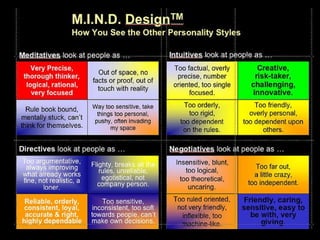It provides descriptions of how each style sees themselves and others, with meditatives seeing intuitives as out of touch with reality and intuitives seeing meditatives as too factual.