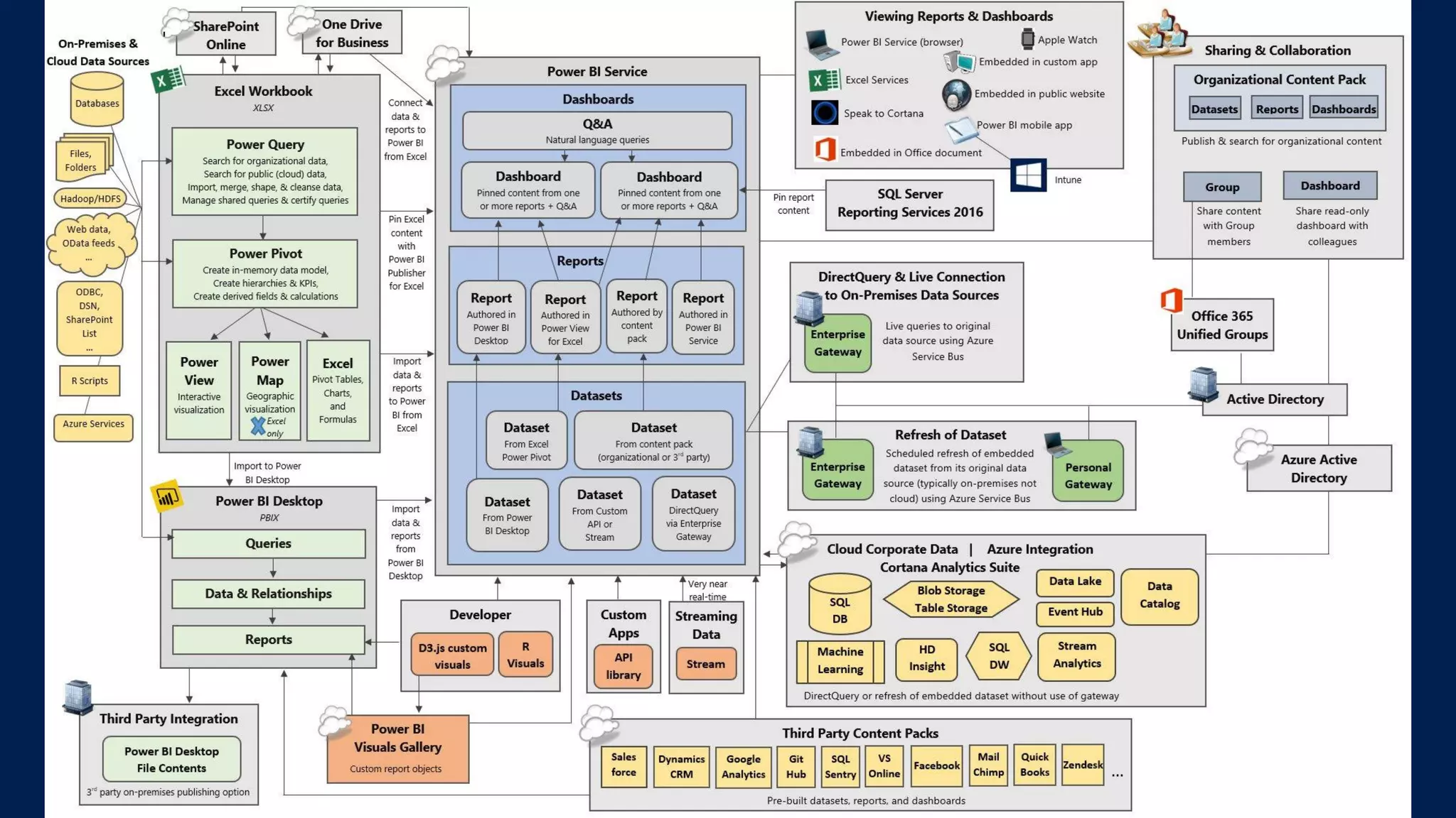The document discusses various aspects of Microsoft Power BI, including its features, licensing options, and comparisons between self-service and organizational business intelligence. It provides details about the different Power BI products, user licensing tiers, performance capabilities, and storage limits. Additionally, it mentions data security measures and the infrastructure required for Power BI implementation.