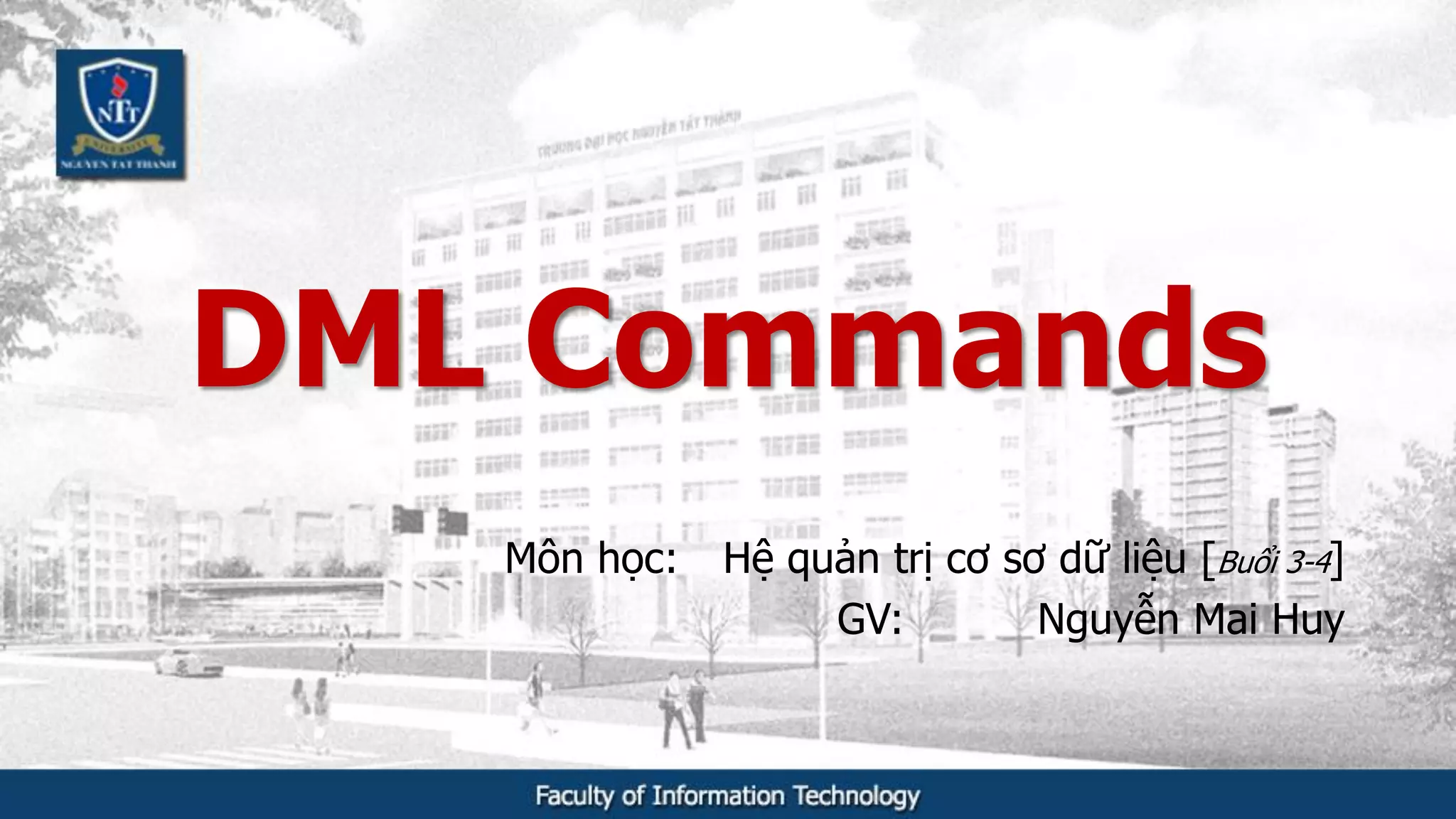 Tài liệu trình bày về ngôn ngữ SQL, đặc biệt là Data Manipulation Language (DML), bao gồm các lệnh như INSERT, UPDATE, DELETE và SELECT để thao tác dữ liệu trong cơ sở dữ liệu. Các lệnh DML cho phép thêm, cập nhật, xóa và truy vấn dữ liệu trong các bảng. Tài liệu cũng cung cấp cú pháp cụ thể và ví dụ cho từng loại lệnh.