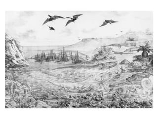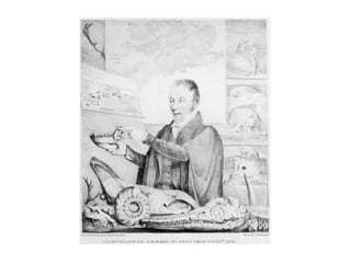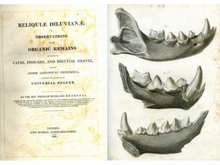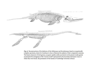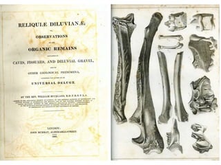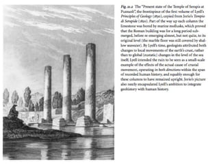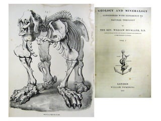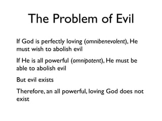 The document discusses the problem of reconciling the existence of an all-powerful, loving God with the existence of evil in the world. It then provides a brief history of ideas related to geology and evolutionary thought from the 16th to 19th centuries. Key figures mentioned include Steno, Hutton, Lyell, and Darwin. Darwin's theory of evolution by natural selection provided a mechanism by which biological diversity could arise without the need for a designer, potentially resolving the problem of evil.