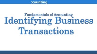 The document provides an introduction to accounting, focusing on business transactions and the chart of accounts. Business transactions are defined as financial occurrences affecting an enterprise’s assets, liabilities, or equity, and must be recorded using specific accounts. The chart of accounts categorizes various account types, such as assets, liabilities, and expenses, to facilitate the recording of transactions.
