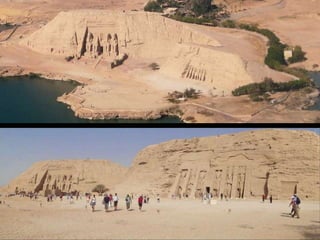 Les estàtues sedents, d'uns 20 metres d'alçada, presidien l'entrada monumental del temple.