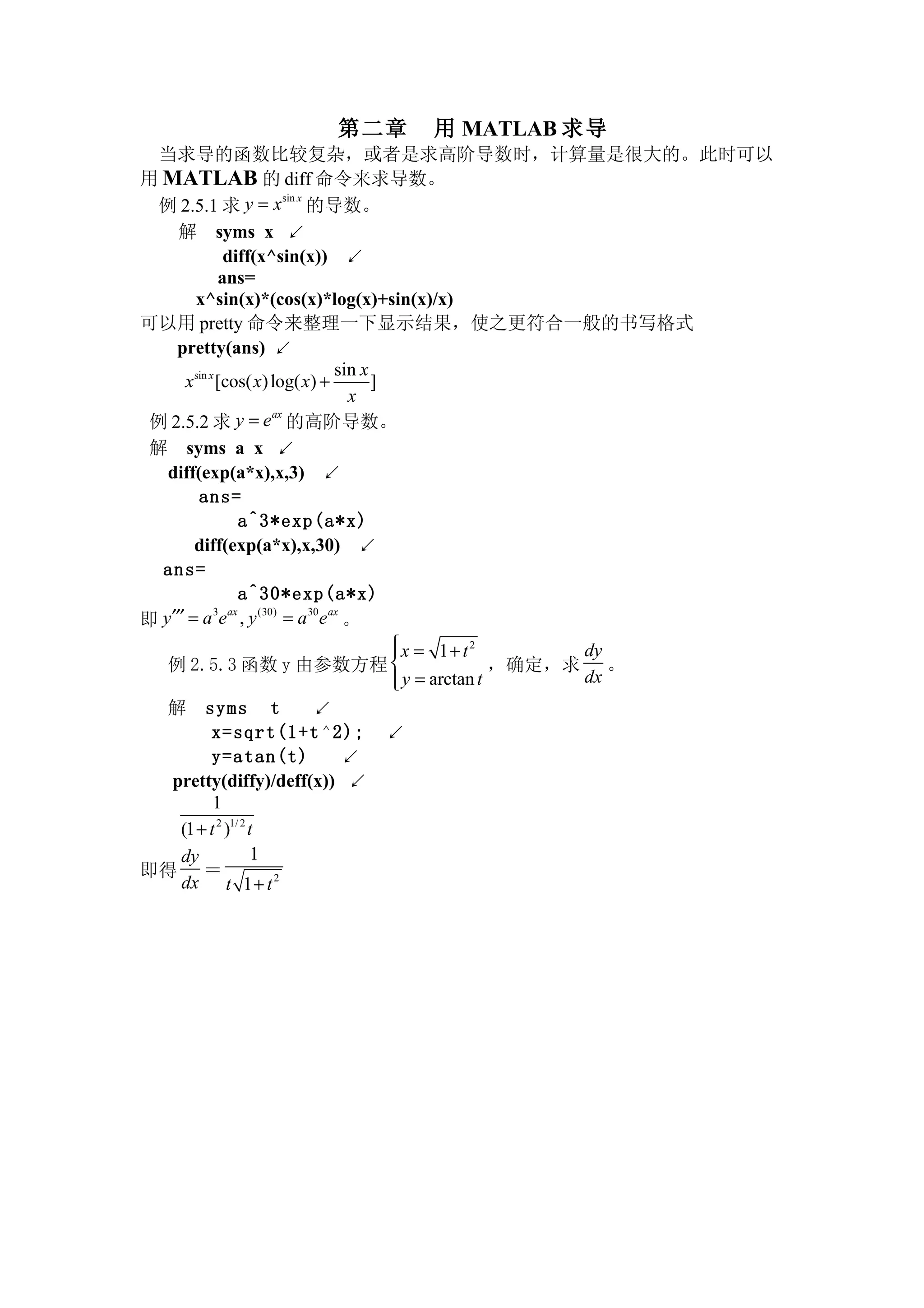 第二章 用 MATLAB 求导
