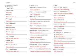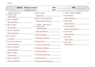 1. The document is an English practice worksheet containing exercises on basic grammar focusing on identifying and forming sentences using demonstrative pronouns like this, that, these, those to describe various objects.
