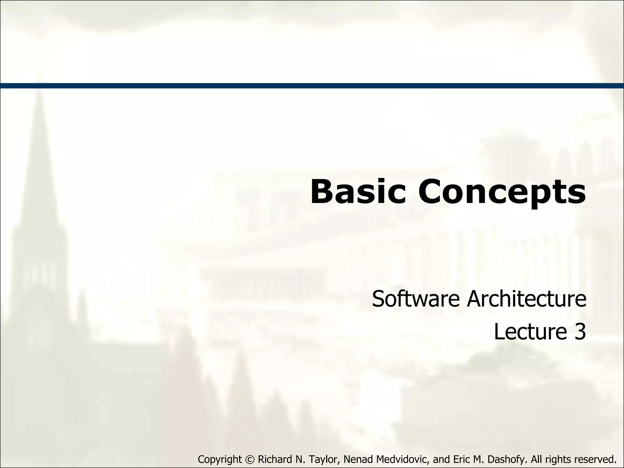 Software architecture is the set of principal design decisions about a software system. It includes decisions about the system's structure, behavior, and interactions. Principal design decisions are those that have a significant impact on the system and are important to stakeholders. A software system's architecture can change over time as design decisions are made and remade throughout the system's lifetime.
