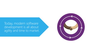 The document discusses the benefits of cloud computing for software development and testing, emphasizing agility, cost savings, and improved quality through shared resources and environments. It highlights tools such as Microsoft Azure and Visual Studio that provide support for developers, including credits and discounts for cloud services. The content also outlines strategies for managing development infrastructure to reduce risks and improve operational efficiency.