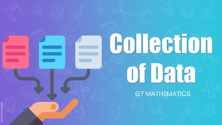 Data can be collected through conducting surveys, observing events, taking measurements in experiments, and reading statistical publications. Some common survey methods are interviews, questionnaires, and observation. Experiments involve taking measurements of objects to collect numeric data. Large datasets are often obtained from government statistical publications. An example is provided of a teacher collecting birthday data on students through checking records, surveys, and collecting response forms.