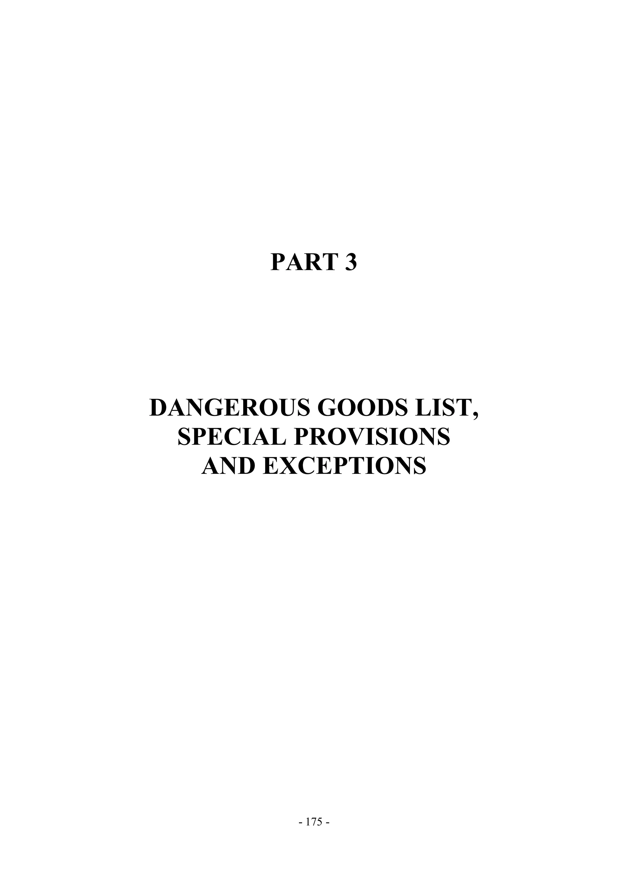 This document contains information about dangerous goods lists, special provisions, and exceptions for transporting hazardous materials. It discusses the scope of dangerous goods covered, proper shipping names, generic entries, and requirements for listing constituents of mixtures. Key points include that the list aims to cover commonly transported dangerous substances, substances must meet classification criteria to be transported under a generic entry, and mixtures described by certain entries need to list only the two main hazard-causing constituents.