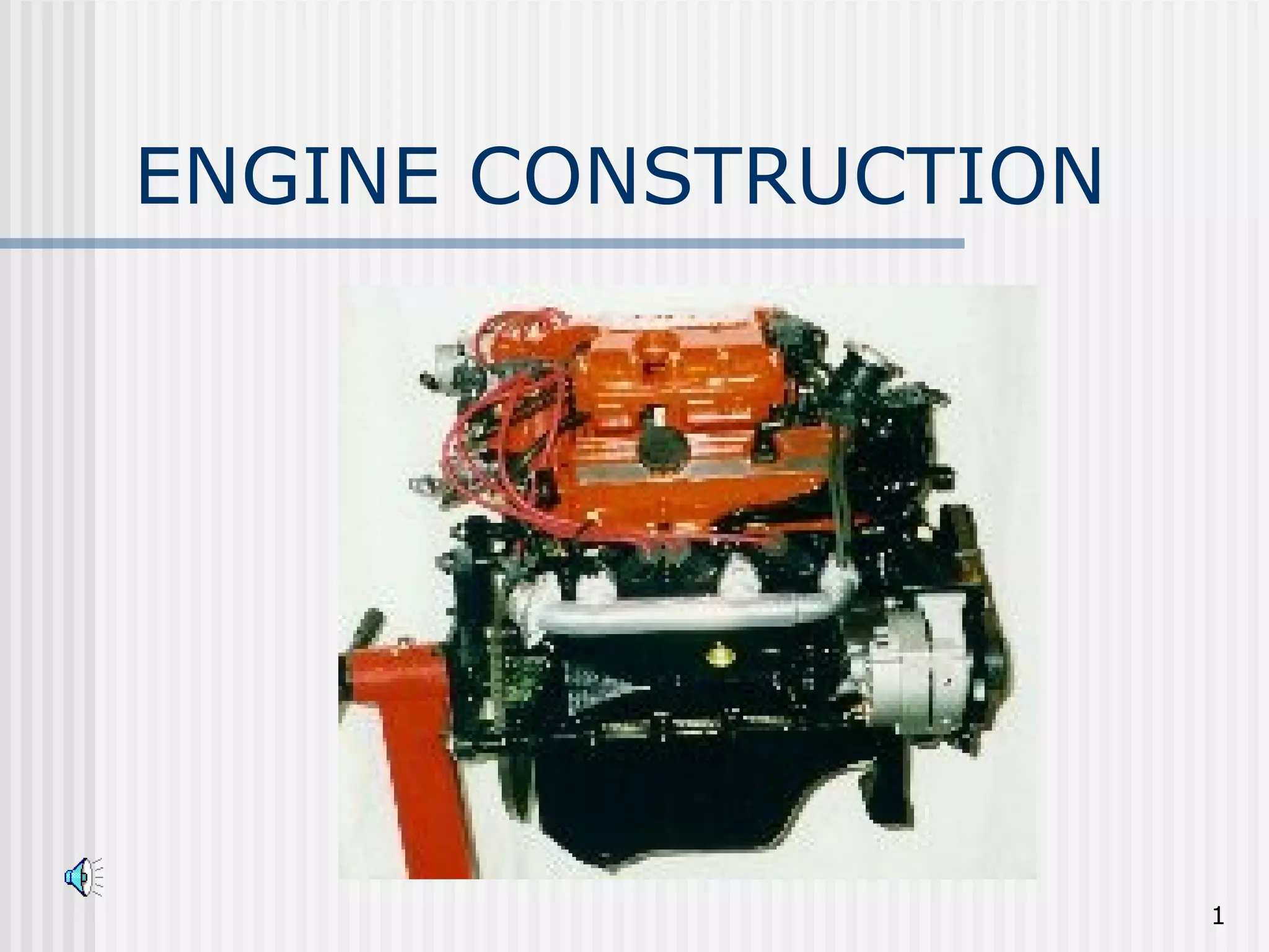 The document discusses the key components that make up the bottom end of an engine, including the engine block, crankshaft, connecting rods, pistons, rings, and bearings. It describes the materials, functions, and terminology associated with each part. The crankshaft converts the reciprocating motion of the pistons into rotational motion to power the vehicle. Pistons harness the energy of combustion and transfer force to the crankshaft via connecting rods. Precise clearances and alignments are needed for proper engine operation and longevity.