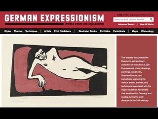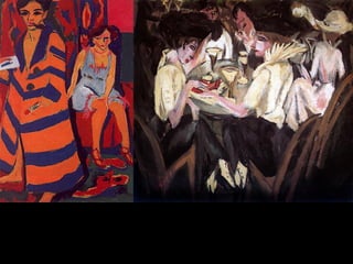 This document provides an overview of several early 20th century avant-garde art movements including Fauvism, Cubism, Expressionism, and Der Blaue Reiter. It mentions key artists such as Matisse, Derain, Brancusi, Kandinsky, Marc, Macke, who pioneered abstract and expressive styles that broke from realism and traditional techniques. Philosophers like Nietzsche, Riegl, and Lipps influenced these movements with ideas questioning established norms and emphasizing empathy and purpose in art.