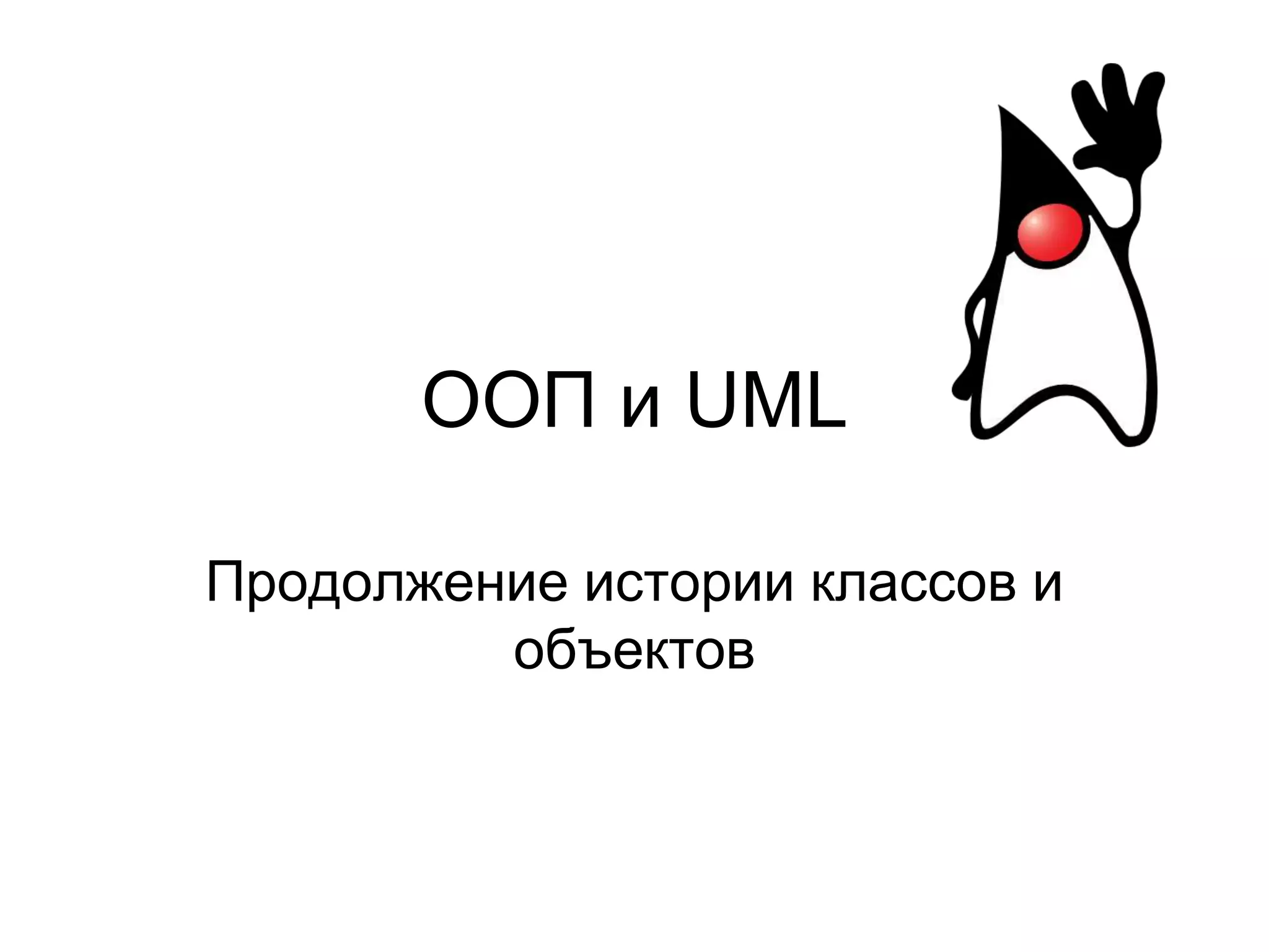 Документ обсуждает принципы объектно-ориентированного программирования (ООП), включая инкапсуляцию, наследование, полиморфизм и абстракцию. Он также охватывает применение этих принципов в Java, такие как единичное наследование и отношения между классами, а также особенности интерфейсов. Дополнительно документ затрагивает UML, его идеологию и различные типы диаграмм, используемые для моделирования систем.