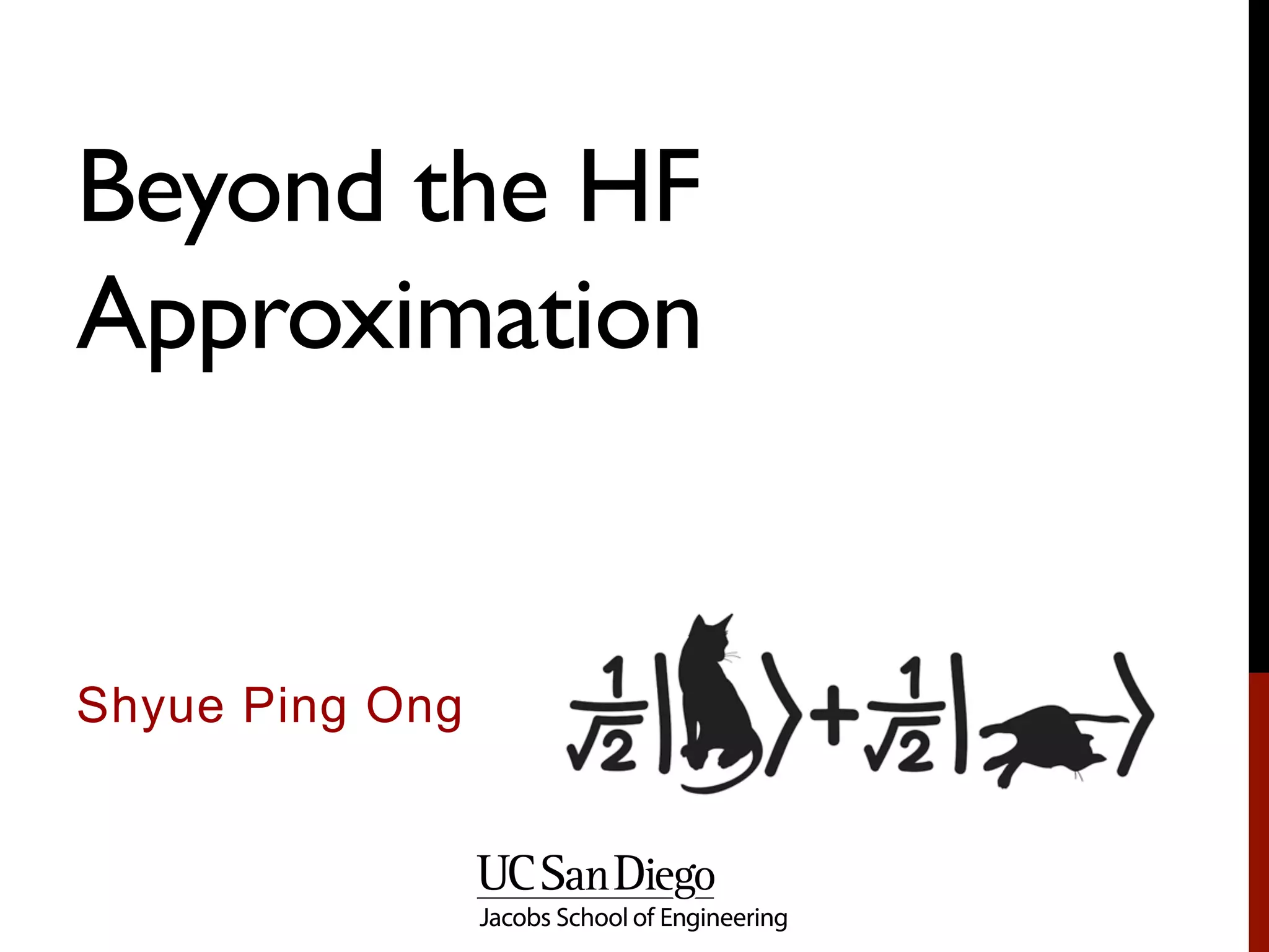 The document discusses the limitations of the Hartree-Fock (HF) approximation in quantum chemistry, particularly regarding the treatment of electron correlation. It explores various advanced methods, such as Møller-Plesset perturbation theory and coupled-cluster methods, for improving upon HF, emphasizing the importance of understanding both dynamic and non-dynamical correlation. Additionally, it highlights the computational costs associated with these methods and provides references for further detailed study.
