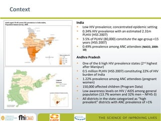 1) The Balasahyoga project in India used a Family Case Management approach to minimize loss to follow up of children and adults infected with HIV across the HIV testing and treatment cascade.