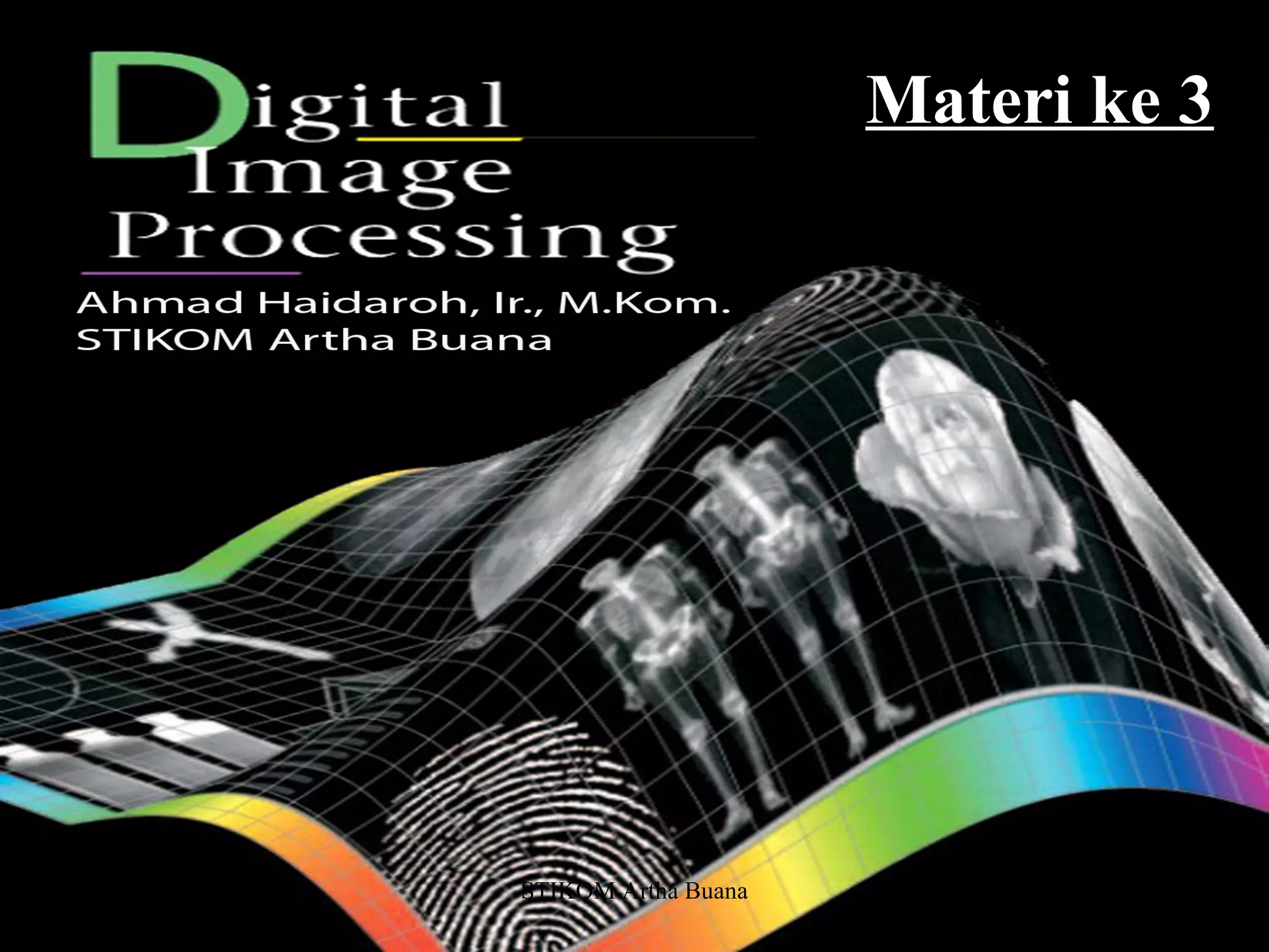 Dokumen ini membahas tentang spatial filtering dalam pengolahan citra, yang mencakup konsep filtering di domain frekuensi, serta jenis-jenis filtering seperti linear (lowpass, highpass, bandpass) dan non-linear (median, maksimum, minimum). Dalam penerapannya, metode perhitungan menggunakan sliding window dan penting untuk menggunakan citra asli sebagai input. Contoh implementasi termasuk lowpass, highpass, dan median filtering yang digunakan untuk menghaluskan citra, mempertegas tepian, dan menghilangkan noise.