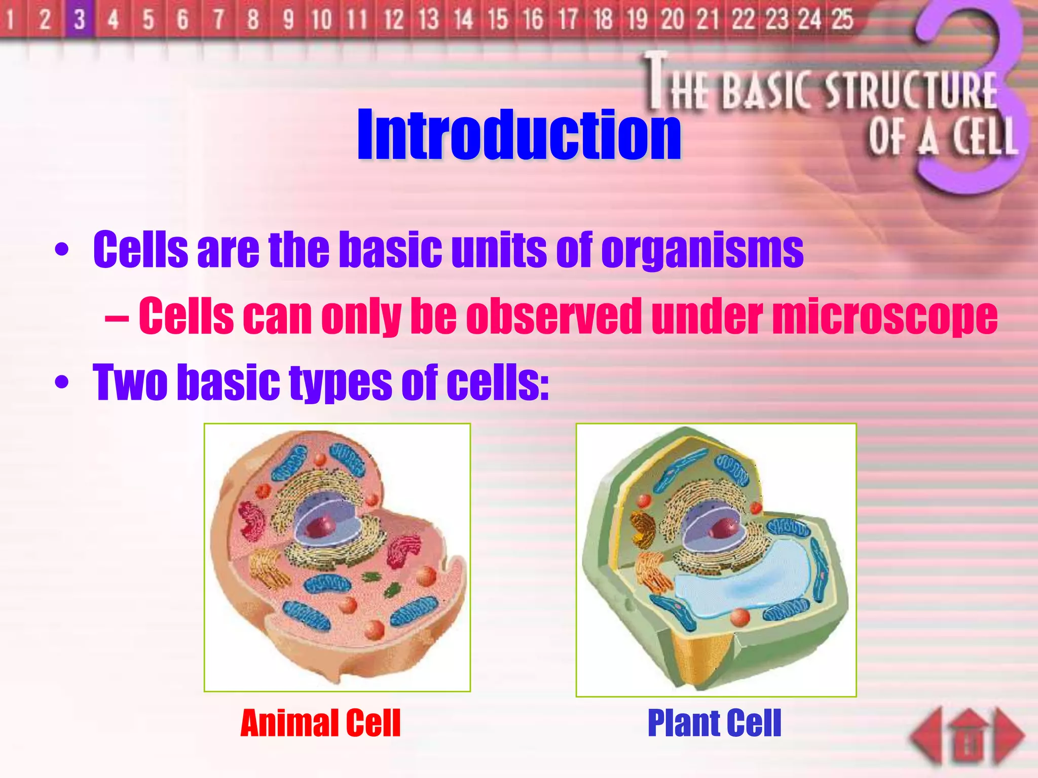 1. Cells are the basic units of organisms and come in two main types - plant and animal cells.