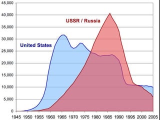 The document provides an overview of the start of the Cold War between the United States and Soviet Union after World War II. It discusses key events like the Iron Curtain speech, the Truman Doctrine and Marshall Plan that established US policies of containment of communism. It also summarizes the formation of military alliances like NATO and the Warsaw Pact, proxy wars, the arms race and space race between the two superpowers during this early period of the Cold War. Debate questions are included about different perspectives on who was responsible for the escalation of tensions.