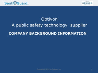 Optivon developed the SentiGuard and SentiHelm applications to facilitate communication between citizens and law enforcement. SentiGuard allows citizens to anonymously submit tips, photos, videos and crime reports to police from their smartphones. SentiHelm is a dashboard that allows police to send push notifications to citizens, view submitted tips and monitor crime maps. The applications were created in Puerto Rico to help address rising crime rates following the murder of the founder's son.