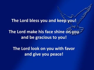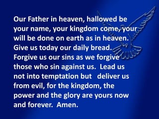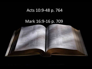 The document appears to be the order of worship for a church service. It includes songs of praise, scripture readings from Acts and Mark, and a prayer. The songs celebrate God's eternal nature, encourage waiting for God's strength, and express blessing upon God's name. They are interspersed with brief passages of scripture and prayer. The service seems focused on worshipping God through music, reading from the Bible, and congregational prayer.