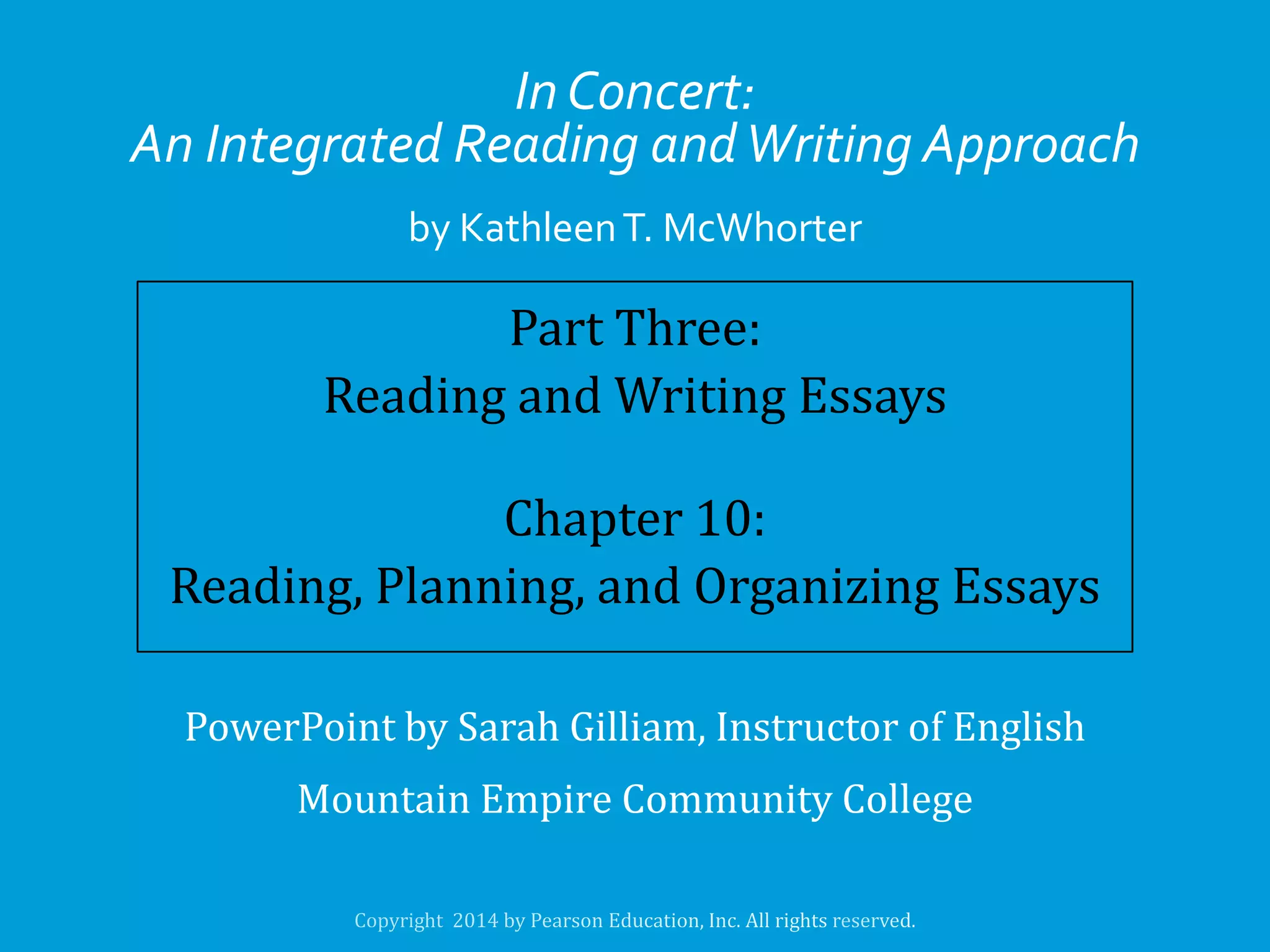 This document is a PowerPoint presentation about reading, planning, and organizing essays. It discusses the components of an essay, strategies for reading essays effectively, choosing topics, generating ideas, planning essays, and organizing essays. The presentation provides tips on highlighting and annotating while reading, determining an author's purpose and qualifications, applying classroom skills to topics, using outlining and mapping to plan, and choosing a formal tone and pattern of organization.