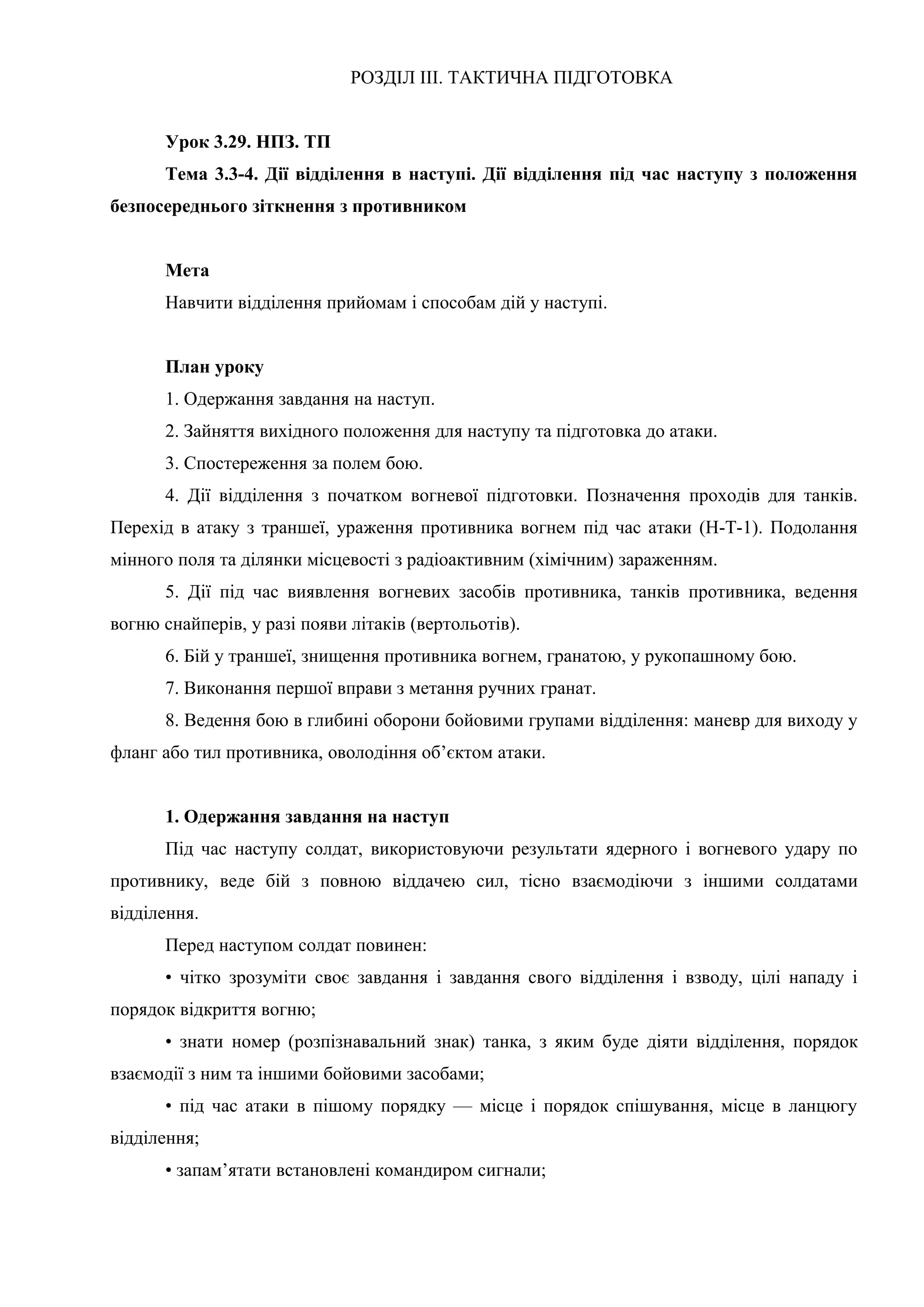 Урок 03.29 Дії відділення в наступі. Дії відділення під час наступу з положення безпосереднього зіткнення з противником