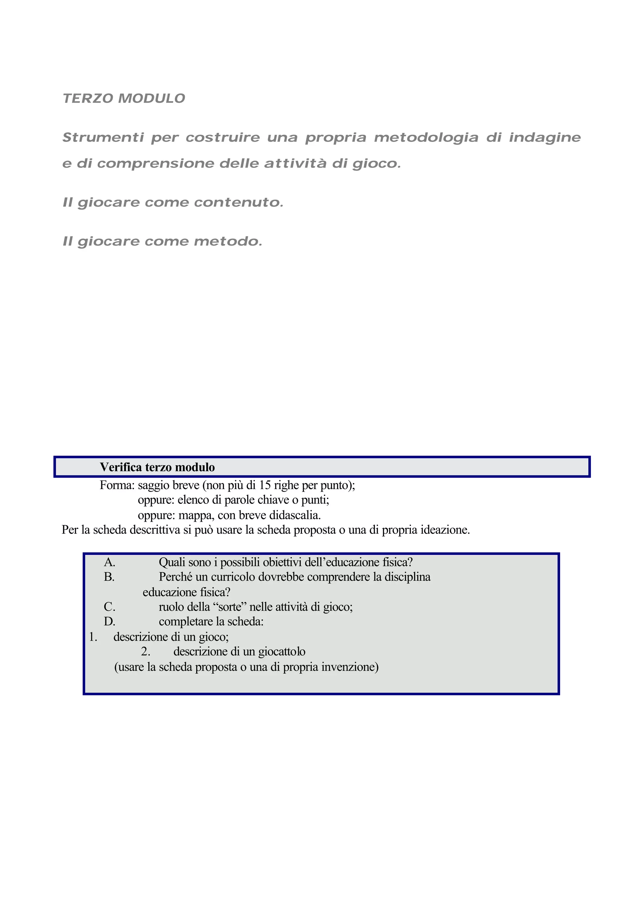Il documento esplora la metodologia educativa attraverso il gioco, evidenziando il suo ruolo cruciale nel processo educativo e nella trasmissione culturale. Discussa l'importanza dell'educazione fisica e del movimento come linguaggi umani complessi, sottolineando come il gioco possa essere uno strumento di sviluppo personale e sociale. Propone anche diverse modalità di indagine e comprensione del gioco, enfatizzando l'approccio multidimensionale e il riconoscimento delle padronanze sociali.