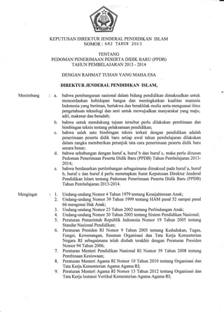 Pedoman ini mengatur tentang Penerimaan Peserta Didik Baru (PPDB) di madrasah untuk tahun pelajaran 2013-2014. Pedoman ini memberikan petunjuk teknis bagi madrasah dalam melaksanakan PPDB dengan memberikan kesempatan kepada setiap madrasah untuk menyesuaikan dengan kondisi mereka. Pedoman ini juga mengatur tentang tujuan, prinsip dan azas PPDB serta ketentuan umum terkait proses PPDB.
