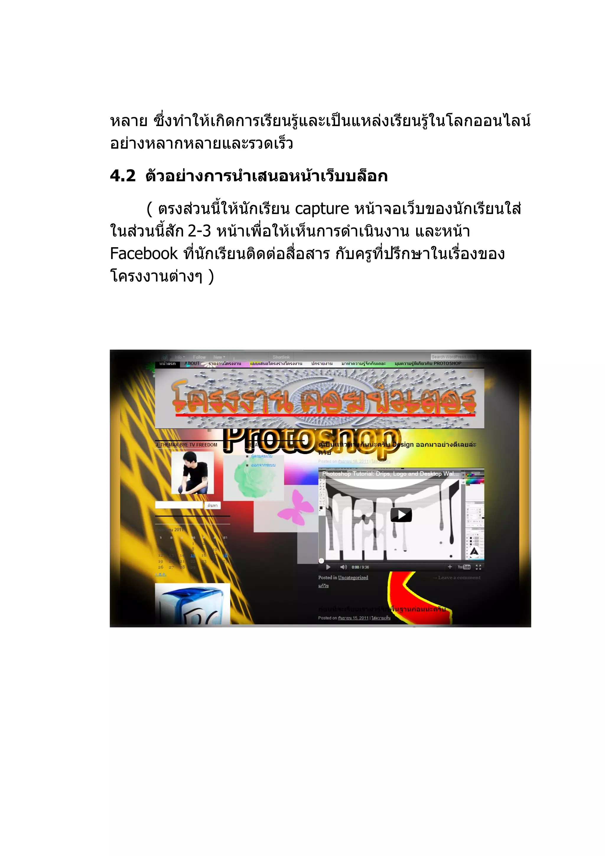 4.2 ตัวอย่างการนำาเสนอหน้าเว็บบล็อก