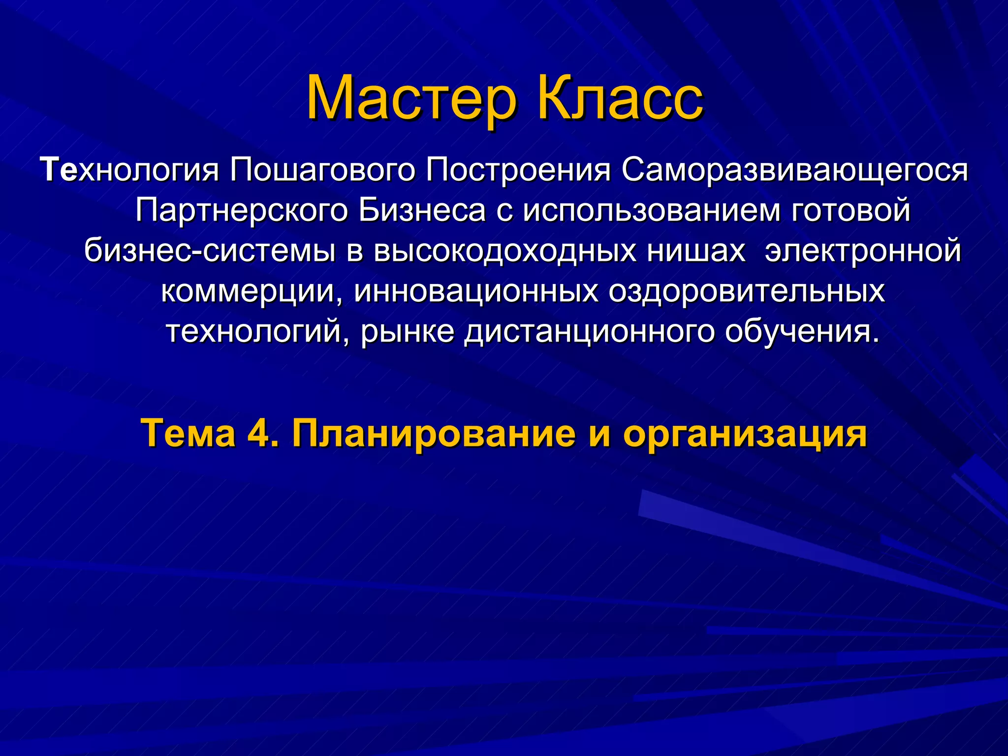 Документ описывает технологию построения саморазвивающегося партнерского бизнеса в сфере электронной коммерции, оздоровительных технологий и дистанционного обучения. В нем представлены методы планирования и организации работы, включая создание и реализацию бизнес-планов, управление финансами и временем. Также рассматриваются стратегии маркетинга и работы с клиентами для достижения финансовой свободы и эффективности бизнеса.