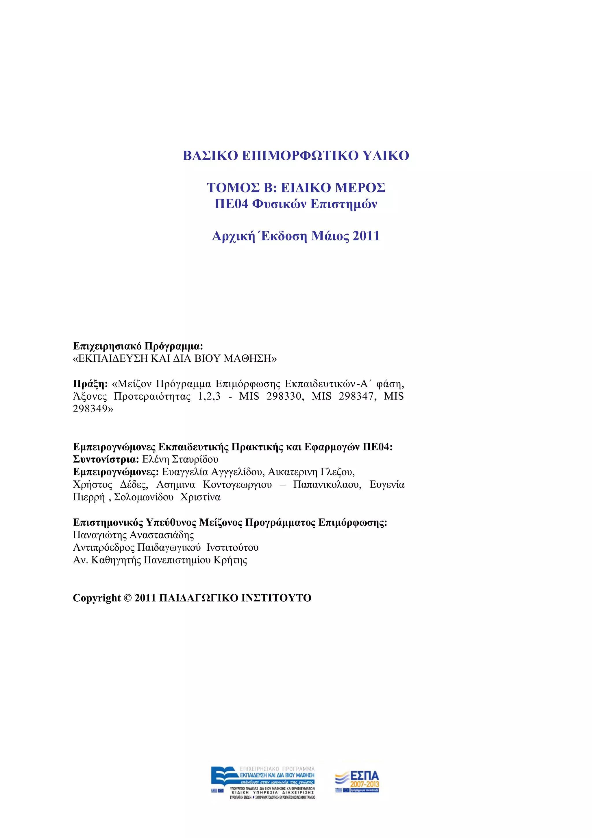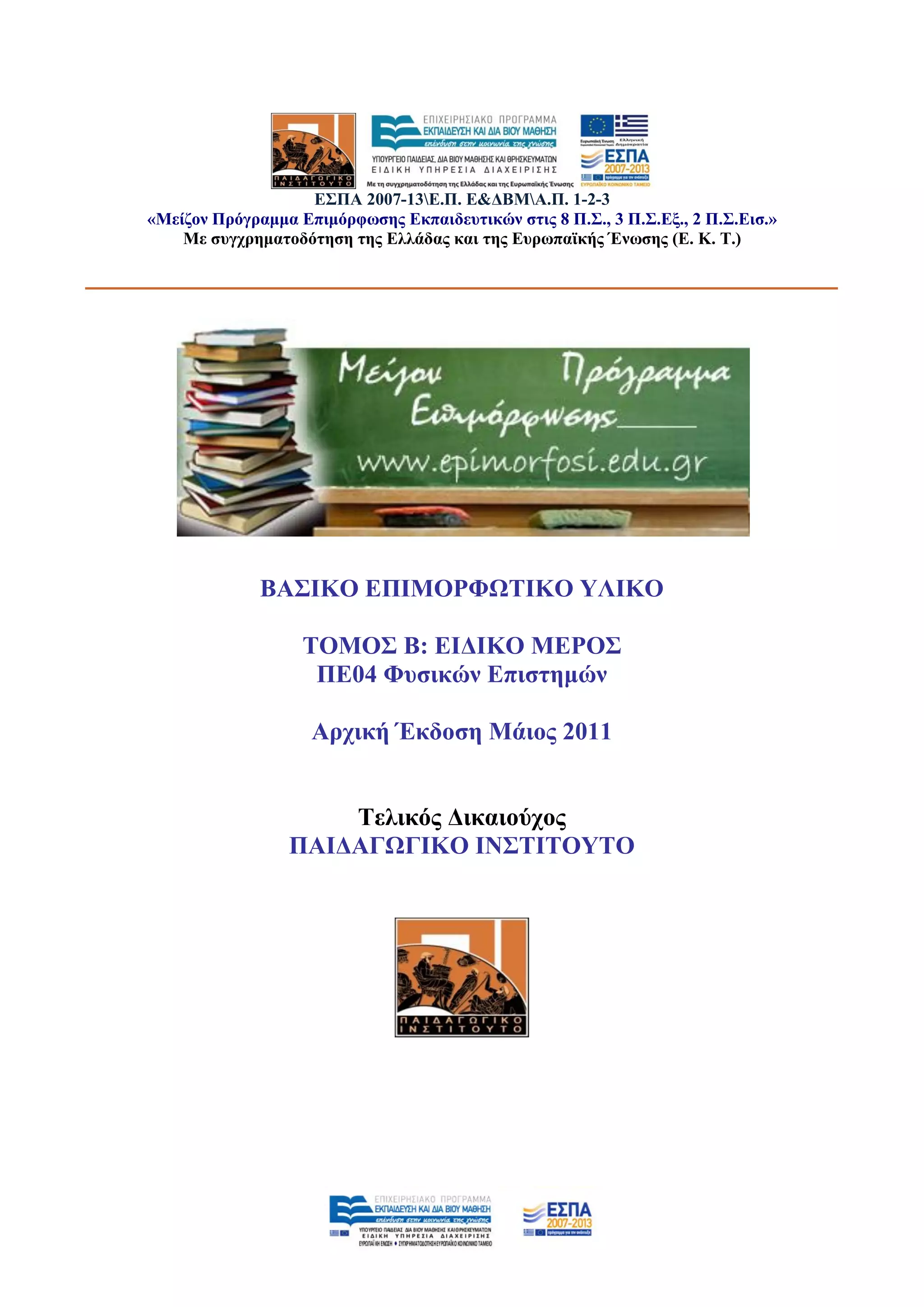 Φπζηθώλ Δπηζηεκώλ ζηε δηδαζθαιία ησλ Φπζηθώλ Δπηζηεκώλ». Αζήλα: ΠΣΓΔ, Παλεπηζηήκην