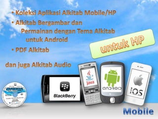 Dokumen ini memberikan ringkasan tentang fitur-fitur yang tersedia pada Software SABDA, sebuah perangkat lunak yang memungkinkan pengguna untuk melakukan studi Alkitab secara lengkap, mudah, mendalam, dan menyenangkan. Software ini menyediakan berbagai versi Alkitab dalam beberapa bahasa, kamus, catatan, tafsiran, modul buku lain, peta, audio, video, gambar, cerita bergambar, dan animasi Alkitab.