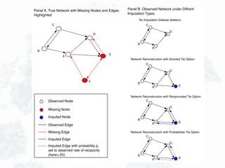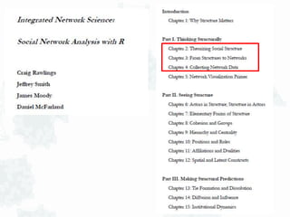 This document discusses network data collection. It begins by providing examples of how social structure matters and influences outcomes. It then discusses different ways to detect social structure through network data collection, including small group questionnaires, large surveys, observations, and digital data scraping. The document outlines key network questions that can shape data collection, such as how networks form and their consequences. It also discusses sampling and defining network boundaries. Overall, the document provides an overview of network data collection methods and considerations.