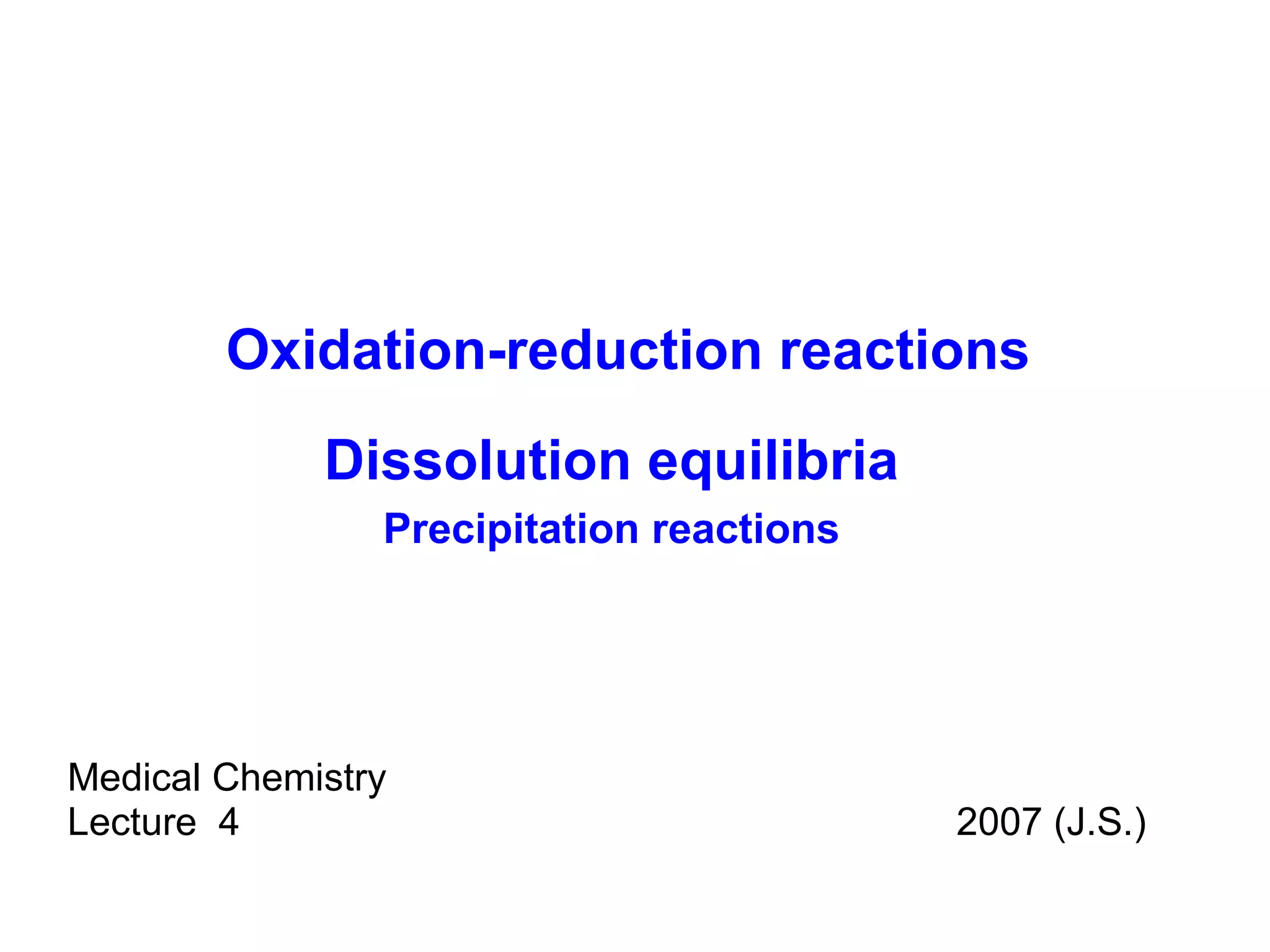 1) Redox reactions involve the transfer of electrons between chemical species, either through the complete transfer of electrons to form ionic bonds, or partial transfer to form covalent bonds. Oxidation is the loss of electrons and reduction is the gain of electrons.