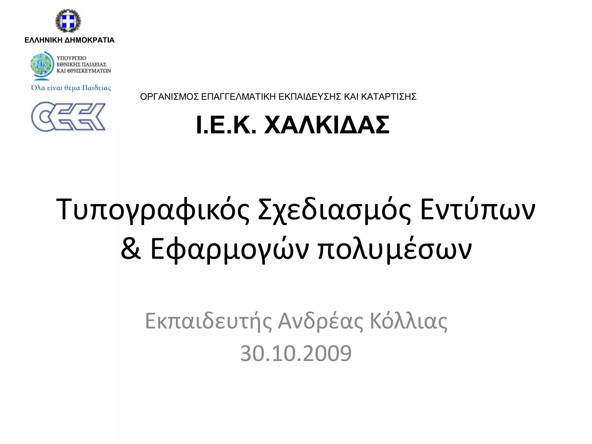 Τυπογραφικόσ Σχεδιαςμόσ Εντφπων