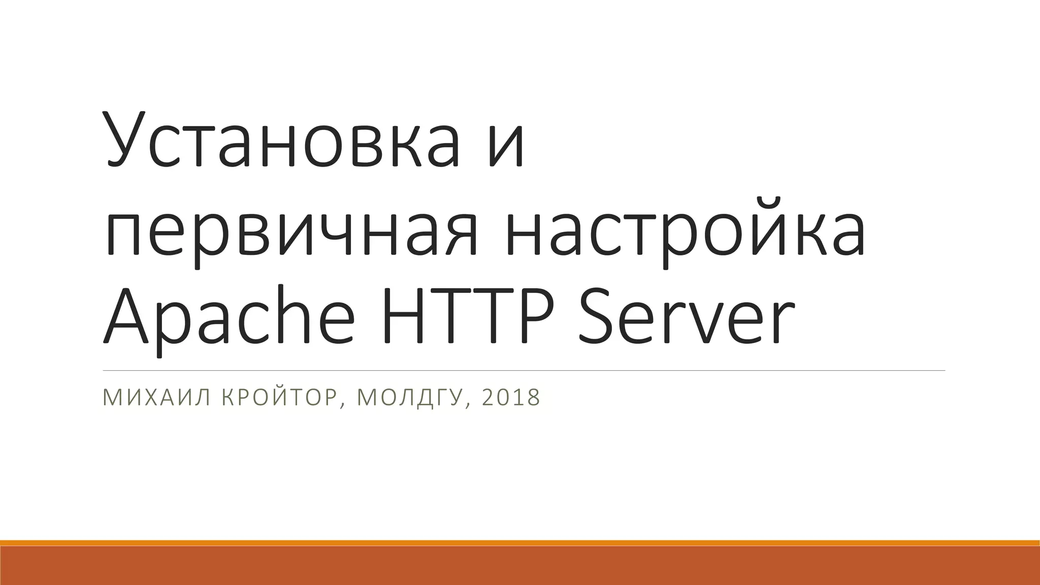Документ описывает процесс установки и первичной настройки веб-сервера Apache HTTP в операционных системах Linux и Windows, включая подготовку системы и конфигурацию. Приведены инструкции по обновлению пакетов, установке необходимых утилит и основным параметрам конфигурации сервера. Также рассматривается взаимодействие с виртуальным сервером, включая настройку портов и адресов.