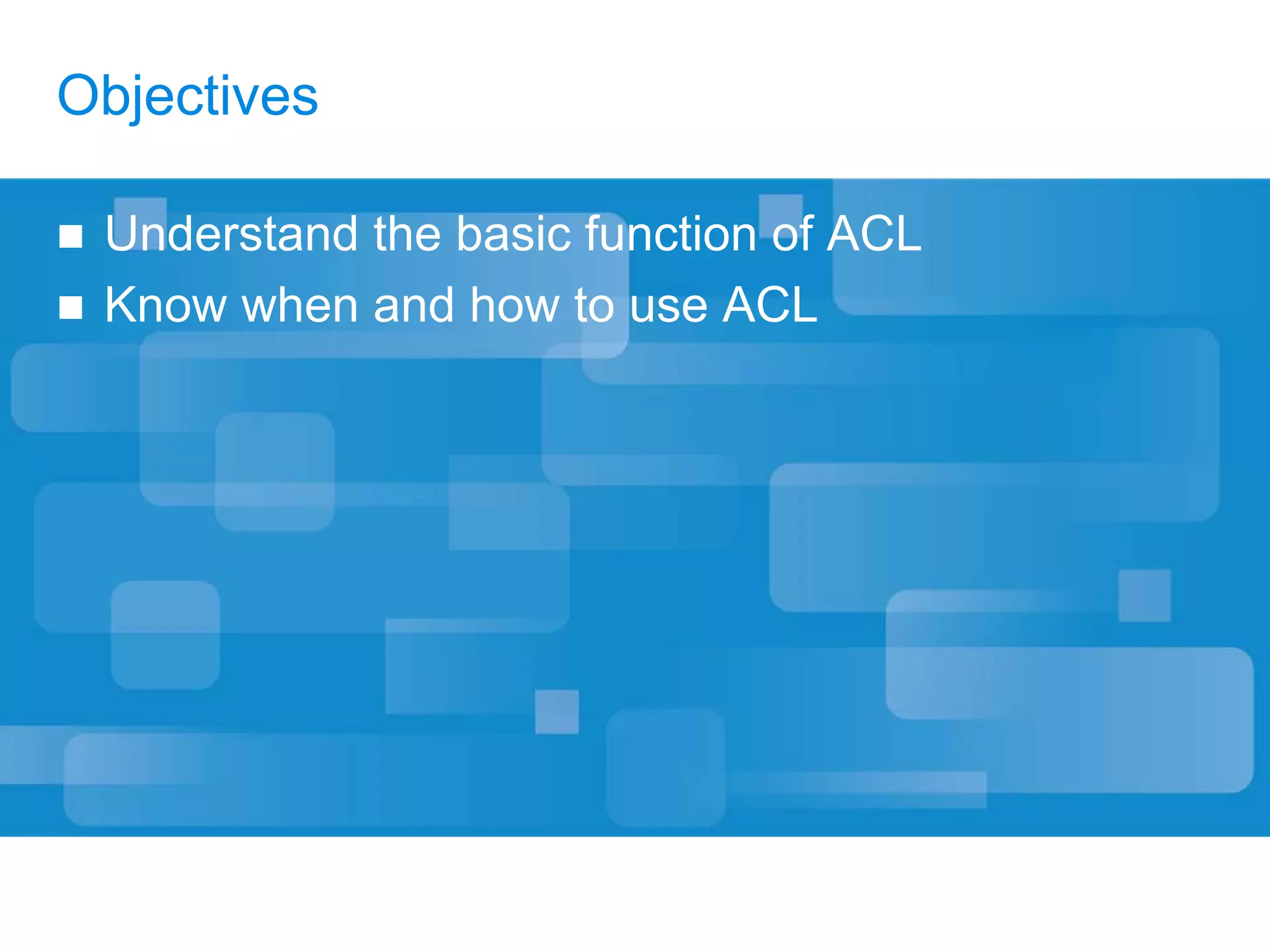 ACLs (access control lists) are used to filter network traffic by permitting or denying packets based on source/destination addresses, protocols, ports, and other packet attributes. There are two main types - standard ACLs filter based on source IP address, while extended ACLs filter on source/destination IP addresses, protocols, ports and other fields. ACL rules are ordered and the first matching rule determines if a packet is permitted or denied. If no rules match, the implicit deny at the end of the ACL is applied.