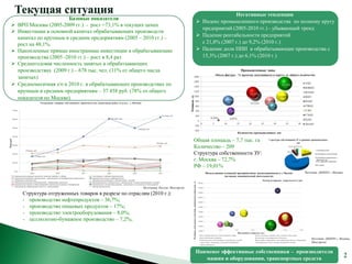 Документ описывает подпрограмму реструктуризации и стимулирования развития промышленности в Москве на 2012-2016 годы с основным акцентом на увеличение конкурентоспособности, ресурсоэффективности и развитие высокотехнологичных предприятий. Приведены основные проблемы промышленного комплекса, такие как падение рентабельности и недостаток инвестиций, а также цели подпрограммы и ключевые инициативы по наведению порядка в управлении промышленными территориями и повышения эффективности производства. Финансирование мероприятий подпрограммы составляет более 14 миллиардов рублей, с разбивкой по годам и направлениям.