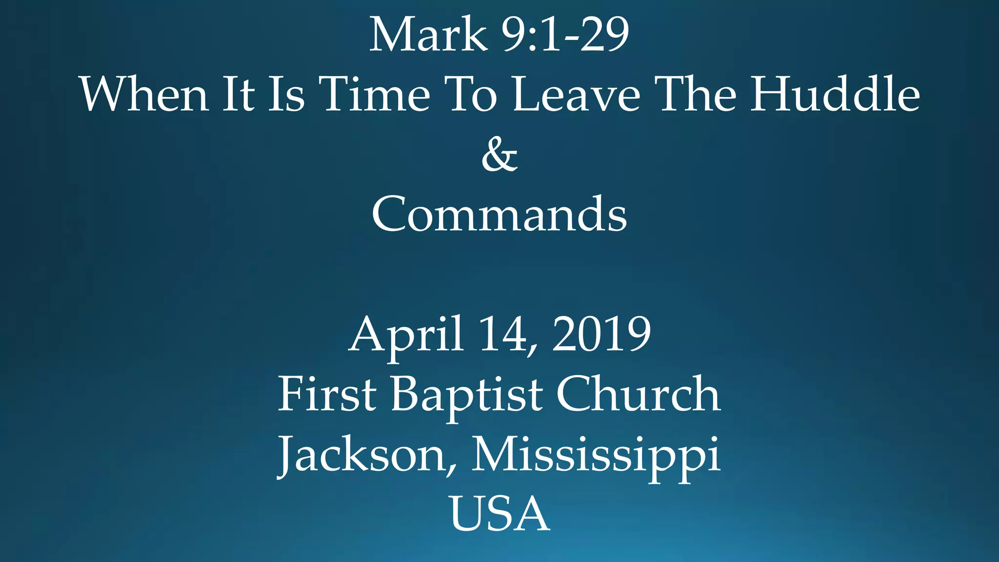 1) Frank Pollard gave a sermon based on Mark 9 titled "When It Is Time To Leave the Huddle". He discussed how Jesus, Peter, James, and John had a mountaintop experience but then had to go into the valley to serve others.