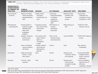- HIV-associated encephalopathy, the most common HIV-related brain disease, presenting as cognitive and motor slowing.