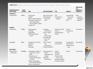 - Several types of infections are described like toxoplasmosis, cryptococcus, CMV, and various types of mycobacteria.