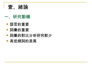 本研究分析了台語文學及非文學類的詞彙差異,旨在對高頻和低頻詞的使用情況进行比较。研究通过文献收集和数据分析,旨在为台語教科书编写和语言研究提供参考。研究样本包括约24万音节的文献资料,来源于数字典藏和台語文网站。
