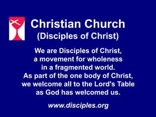 This document provides information about Central Christian Church (Disciples of Christ) in Marshalltown, Iowa. It includes the church's mission statement of dedicating lives to receive and share God's love and word. It also lists upcoming events like a mission trip, rummage sale, and fellowship opportunities. Contact information is provided for the church office.
