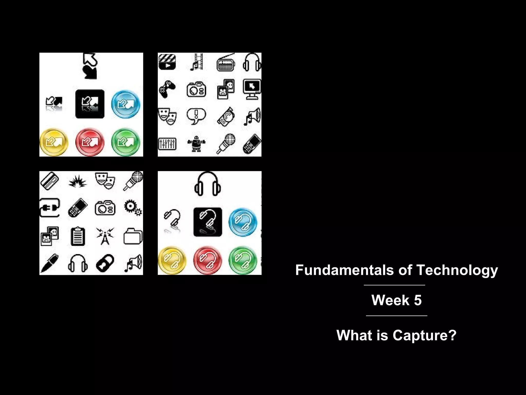 The document discusses various concepts related to capturing digital media, including: