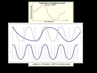 1) Digital sampling breaks sounds and images into discrete data points that can be stored and reconstructed, with higher sampling rates providing more detail.
