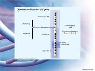 Cystic fibrosis is caused by mutations in the CFTR gene which codes for a chloride channel protein. This leads to thick, sticky mucus production throughout the body. The mucus clogs the lungs and pancreas, causing infections and poor digestion. Current treatments only manage symptoms; gene therapy aims to add a functional CFTR gene to lung cells to thin the mucus. However, delivering the gene faces challenges of immune responses, inefficient vectors, and short-term effects. A cure would require altering every cell, which is currently impossible.
