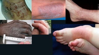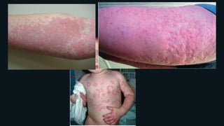 Документ описывает нейродерматозы, включая нейродерматит и его различные формы: диффузный, диссеминированный и ограниченный. Основные симптомы включают зуд, воспаление кожи и различные дерматологические изменения, сопровождающиеся потенциальными осложнениями, такими как инфекции. Лечение включает местную терапию, гипосенсибилизирующую терапию и курортное лечение, а также коррекцию факторов, способствующих развитию заболевания.