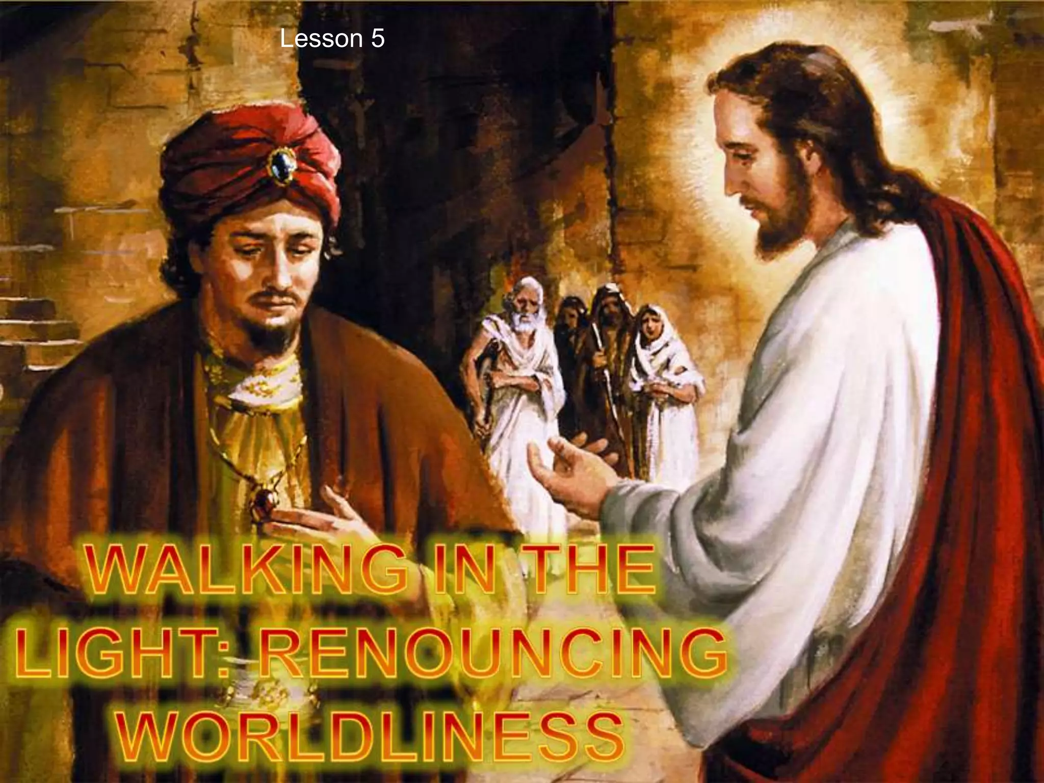 John writes a letter to believers to encourage them not to love worldly things. He addresses children, fathers, and young men. He reminds them that through Jesus, their sins are forgiven and they know God. John warns against loving three things: the lust of the flesh, the lust of the eyes, and the pride of life. These come from the world rather than God and are passing away. In contrast, those who do God's will will live forever.