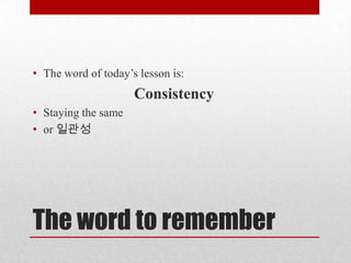 The document provides guidance on maintaining consistent verb tense when writing. It advises that if an event is written about in the past tense, all verbs describing that event should be in the past tense. The same applies for present and future tense. It highlights examples of inconsistent verb tense that can confuse readers and provides corrected versions with consistent tense. Exceptions when switching tense is acceptable, such as when referring to habits, opinions, or using words like "but" or "however", are also discussed.