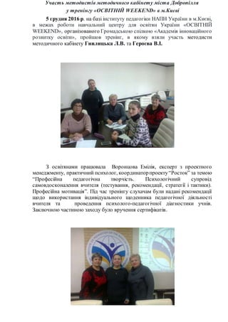 тренінг київ 05.11.16 сайт гороо 1. Участь методистів методичного кабінету міста Добропілля