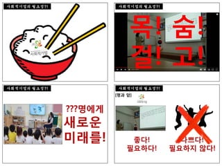 2022 사회적기업가육성사업 2주차 교육 때 제가 진행했던 '사회적기업의 필요성과 우리의 필요성' 시간에 활용했던 자료입니다.