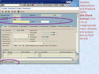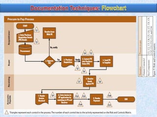 1) Auditors conduct a top-down risk assessment (RA) to determine which applications and controls to review. They document risks and controls in matrices mapped to processes, accounts, and disclosures.